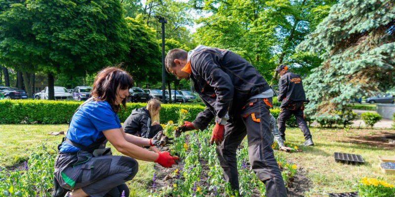 – Obecnie sadzimy rośliny jednoroczne, które zakwitną niebawem. Ponadto uzupełniane są nasadzenia i sadzone są nowe byliny i trawy ozdobne. Wkrótce na Rynku, pl. Sobieskiego i ul. Katowickiej pojawią się wiszące donice z kwiatami – wymieniała Gabriela Kadłubek, z działu zieleni MZDiM.