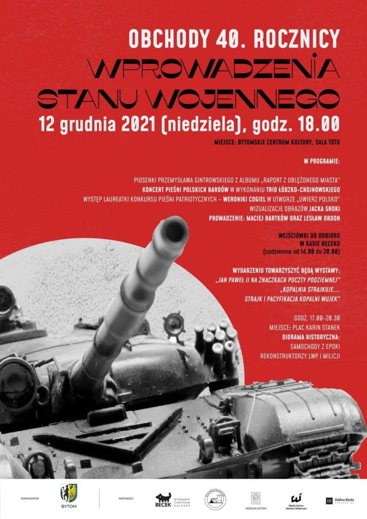 Dzień przed rocznicą, Bytom organizuje specjalne wydarzenie, które ma przypomnieć o tym co zdarzyło się w 1981 roku w Polsce. Obchody odbędą się 12 grudnia o godzinie 18:00 w Bytomskim Centrum Kultury w Sali Totu.