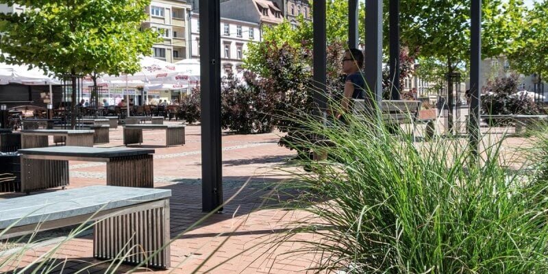 Rynek w Bytomiu już nie wygląda jakbym przewodnią myślą był beton. To miejsce zmieniło się praktycznie nie do poznania. Miasto posadziło mnóstwo roślin i ustawiło nowe meble miejskie.