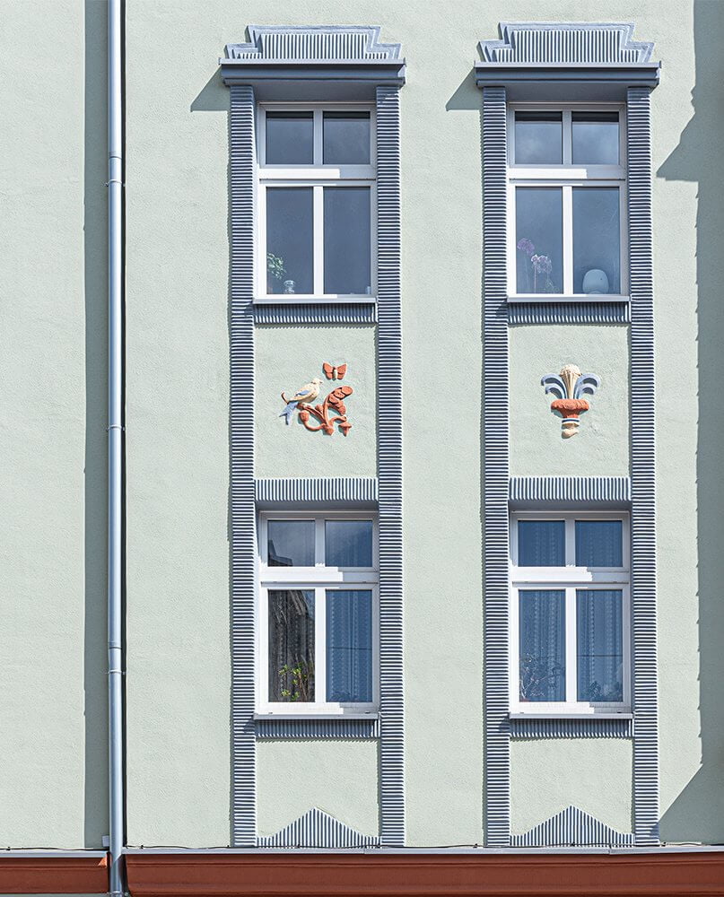 Jednak by przepiękna fasada kamienicy cieszyła oko jak najdłużej, jako wierzchnią warstwę zastosowano specjalny tynk w postaci paropuszczalnego tynku silikatowo-silikonowego o niskiej nasiąkliwości Baumit StellaporTop. Jest on bardzo odporny na wilgoć i niekorzystne warunki atmosferyczne.