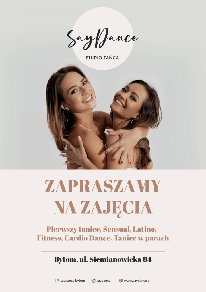 SayDance w Bytomiu powstało dzięki dwóm instruktorom o wielkim sercu do tańca. Ich marzeniem było stworzenie miejsca, w którym poczujecie komfort po prostu bycia sobą. Według Kamili i Kasi, SayDance to kawałek tanecznego nieba. Dziewczyny chcą pokazać wam, że każdy z was jest ważny – wiadomo, że czasami jest ciężko, ale zawsze warto poświęcić ten czas właśnie dla siebie.