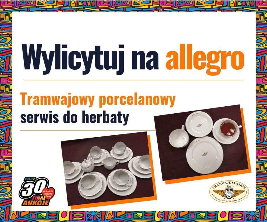 Oprócz wyjątkowej usługi, spółka Tramwaje Śląskie przekazała na aukcję WOŚP wspaniały 6-osobowy serwis deserowy Porcelany Bogucie. Ten przedmiot nie jest dostępny w żadnym sklepie w całej Polsce. Zestaw udekorowano złotą linią, napisem Tramwaje Śląskie S.A. i logotypem śląskiej spółki. Serwis składa się z cukiernicy, mlecznika, 6 deserowych talerzyków, 6 filiżanek i 6 spodków.